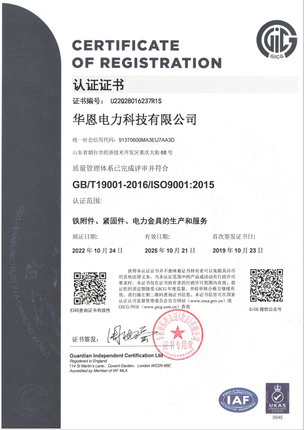 华恩电力科技有限公司是一家集研发、生产和销售为一体的科技型企业。成立于2017年11月,注册资本5000万元,公司位于美丽的海滨城市烟台市经济技术开发区,凭借专业的水平和成熟的技术,在电力金具、铁附件和螺栓材料等领域迅速崛起。